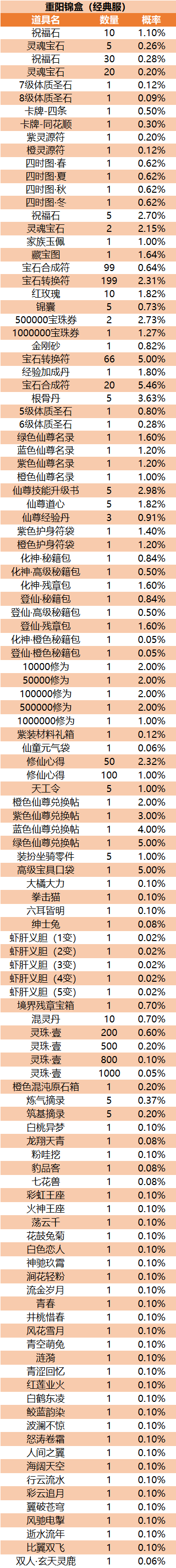 - [公告] 重阳锦盒(经典服)概率公示 10/22