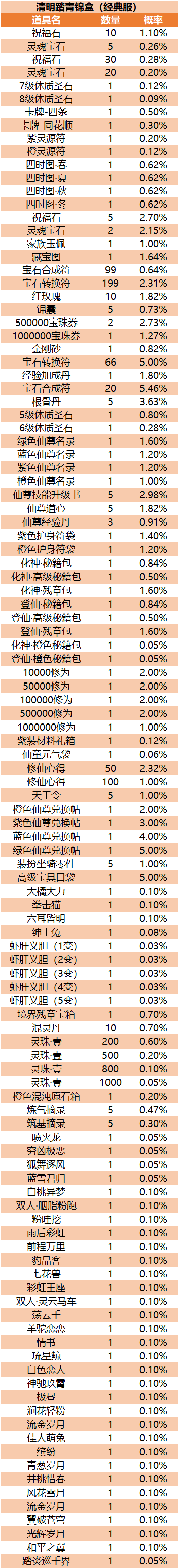 - [公告] 清明踏青锦盒(经典服)概率公示 04/01