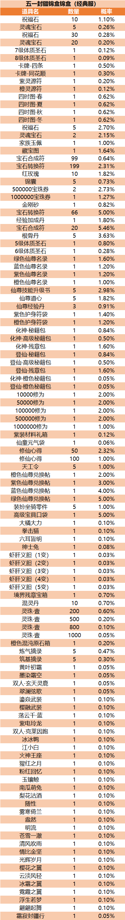- [04/29] 五一封疆锦盒锦盒(经典服)概率公示